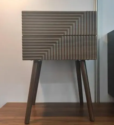 Mesita de noche estriada con cajón y compartimento abierto, muebles de dormitorio modernos